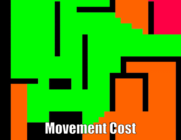 - The world is organized into grid cells. Each grid cell has an integer Movement Cost (1, 2, 4, or 8), or is a wall that cannot be moved upon or through.