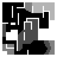 Here is the test map I drew, stored in the Red channel but displayed in greyscale for clarity. It’ll work well for testing purposes, although I can’t say Shouzou Kaga would be proud of the design. As you can see, the absolute black and shades of grey define grid cells that may be travelled to and their Movement Cost, whereas the absolute white defines impassable walls.